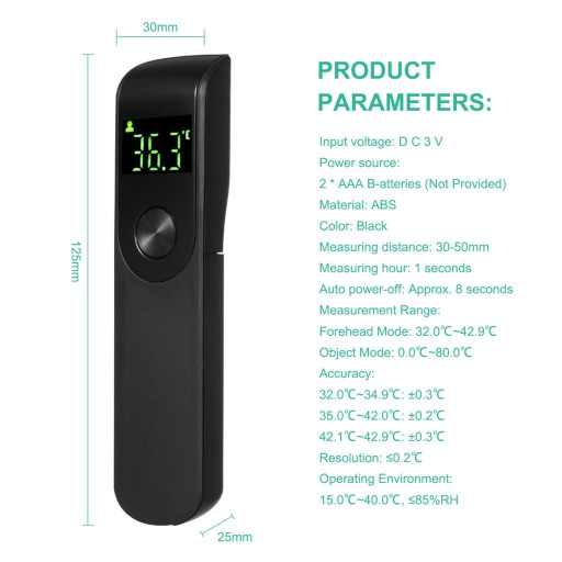 1.Το ηλεκτρονικό υπέρυθρο θερμόμετρο μετώπου είναι ένας ασφαλής, υγιεινός και ανέπαφος τρόπος, ο οποίος μπορεί να λάβει ακριβείς μετρήσεις μέσα σε 1 δευτερόλεπτο.